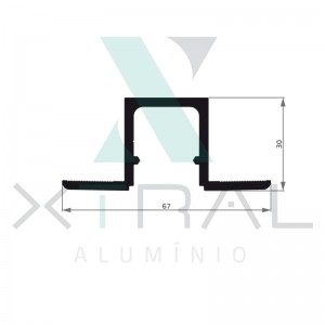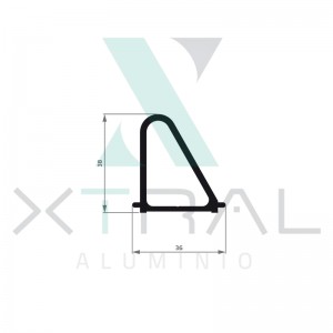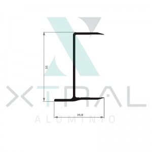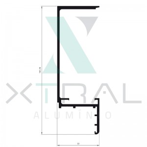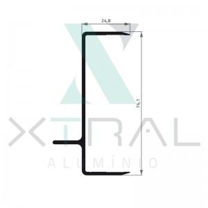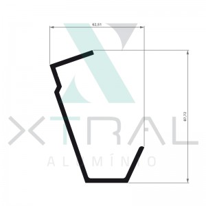 Perfil extrudado de alumínio para MBP, com peso linear de 1,294kg/m.Ver perfis relacionados
