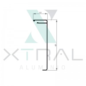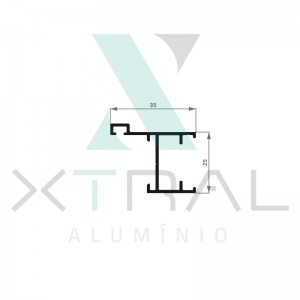 Perfil extrudado de alumínio para LINHA XTRAL S, com peso linear de 0,341kg/m...