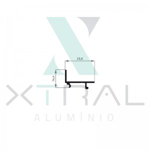 Perfil extrudado de alumínio para LINHA XTRAL S, com peso linear de 0,144kg/m...