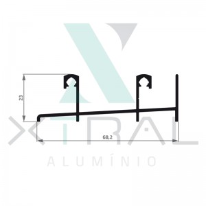 Perfil extrudado de alumínio para LINHA XTRAL S, com peso linear de 0,618kg/m...