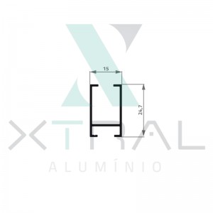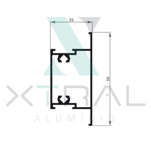 Perfil extrudado de alumínio para LINHA 28, com peso linear de 0,458kg/m...