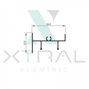Perfil extrudado de alumínio para LINHA XTRAL G, com peso linear de 2,222kg/m...