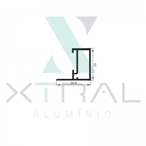 Perfil extrudado de alumínio para LINHA XTRAL S, com peso linear de 0,295kg/m...