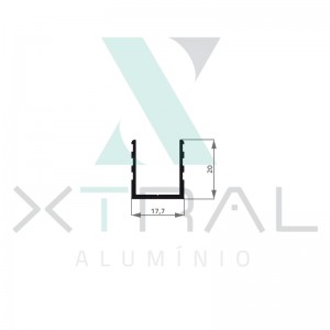 Perfil extrudado de alumínio para ALUNOBRE, com peso linear de 0,200kg/m...