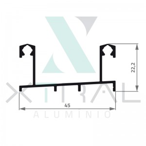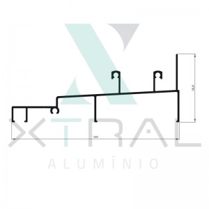 Perfil extrudado de alumínio para LINHA TOP, com peso linear de 0,365kg/m...