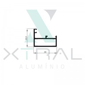 Perfil extrudado de alumínio para LINHA 30, com peso linear de 0,389kg/m...
