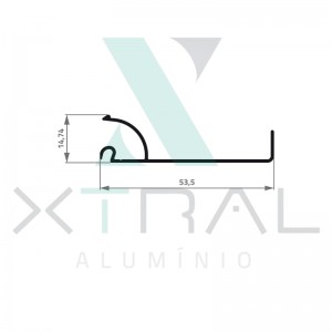 Perfil extrudado de alumínio para LINHA XTRAL S, com peso linear de 0,396kg/m...