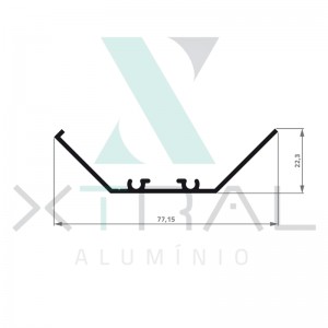 Perfil extrudado de alumínio para LINHA XTRAL S, com peso linear de 0,459kg/m...