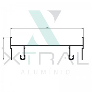 Perfil extrudado de alumínio para LINHA XTRAL S, com peso linear de 0,878kg/m...