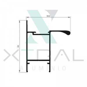 Perfil extrudado de alumínio para LINHA XTRAL G, com peso linear de 1,009kg/m...