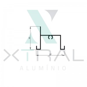 Perfil extrudado de alumínio para LINHA XTRAL G, com peso linear de 0,759kg/m...