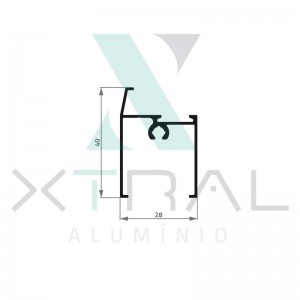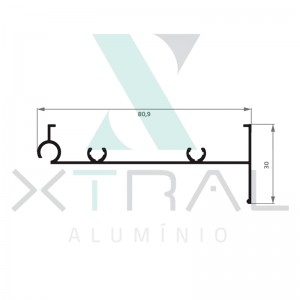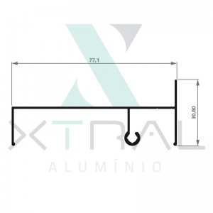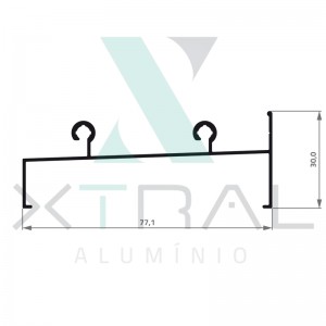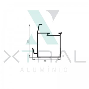 Perfil extrudado de alumínio para LINHA TOP, com peso linear de 0,311kg/m...
