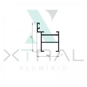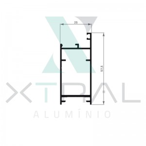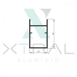 Perfil extrudado de alumínio para LINHA 25, com peso linear de 0,601kg/m...