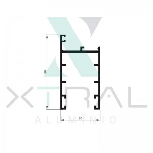 Perfil extrudado de alumínio para LINHA 30, com peso linear de 0,16kg/m...